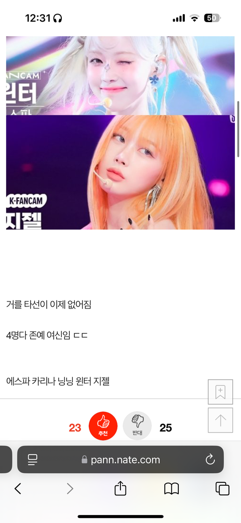 얘네 진짜 개웃기다 ㅋㅋㅋ 에스파 까는 거 톡선 바로 올려놓고 지들끼리 맞네 아니네 북치고 장구침 ㅋㅋㅋ 진짜 역겹다 그 쪽 알바들만 아니면 톡선 잠잠함 진짜임 ㄹㅇ
