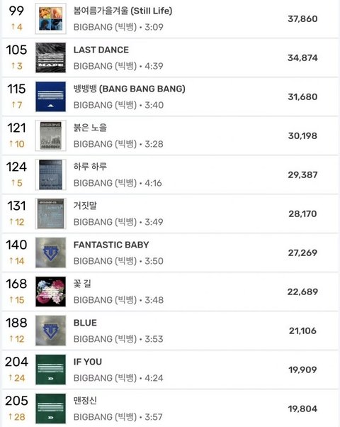 빅뱅 노래 좋은거 많은데 더 차트인하면 좋겠다