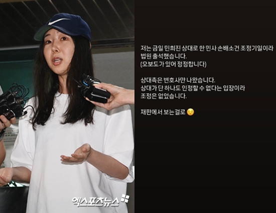 앞서 A씨는 민희진이 잘못을 시인하고 사과한다면 조정에 합의하겠다는 뜻을 내비쳤다. 하지만 민희진 측이 전체 사실 자체를 인정할 수 없어 "조정에 응할 의사가 없다"라는 입장을 내놓으며 조정은 결렬됐다.