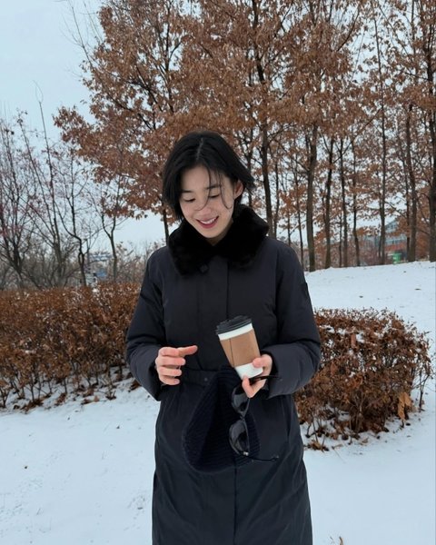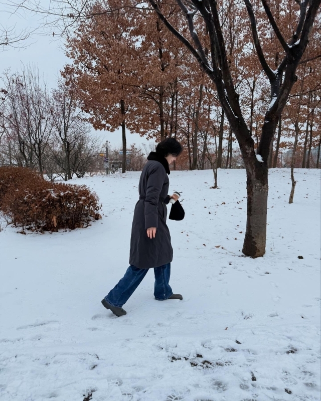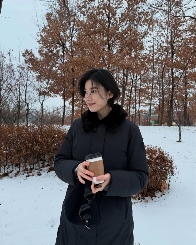 정은채는 소복이 쌓인 눈밭에서 즐거운 시간을 보내고 있는 모습이다. 나무에 눈덩이를 붙여 만든 눈사람에 정은채의 동심이 엿보인다.