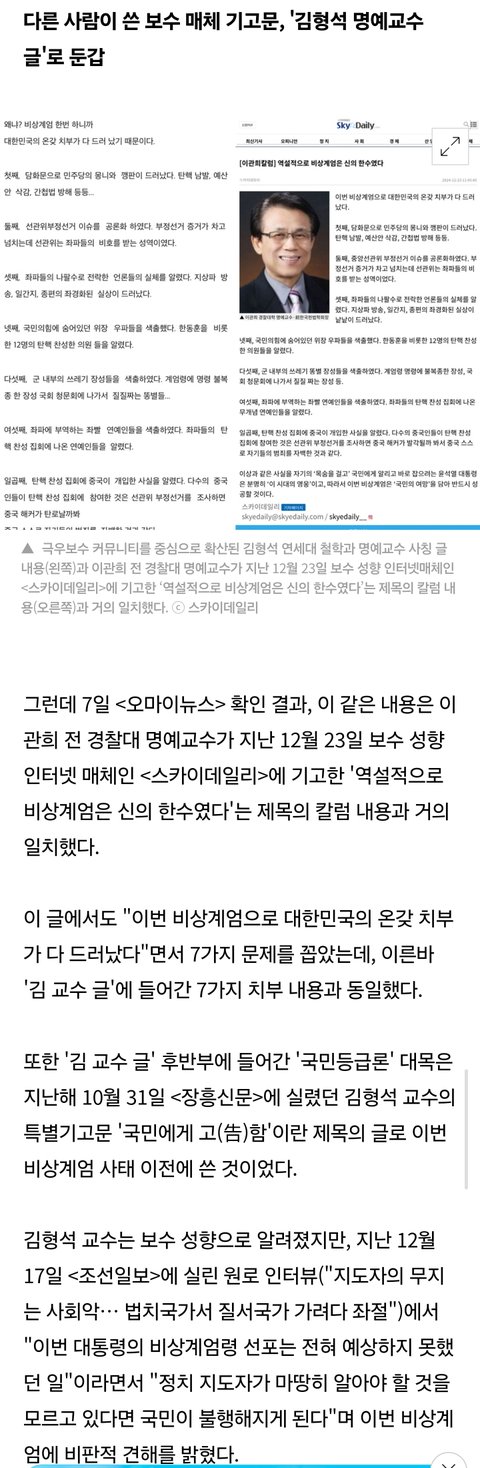 비상계엄은 신의 한 수였다"/ 김형석 교수의 주장 -