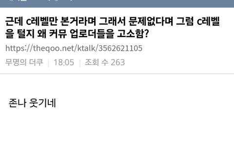 뭐가 빡친다누거임 뇌가 없냐 심각하다 그러니까 고소 당하지 ㅈㄴ 뻔뻔 그자체네 저기 글쓰는거 되게 없어보임 존심은 또 쌔서ㅋ