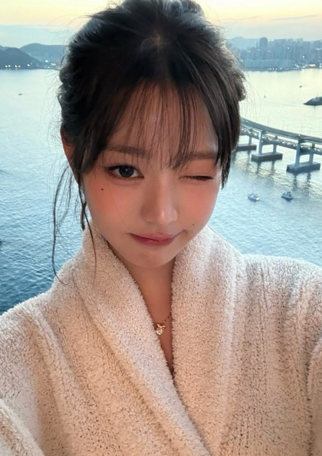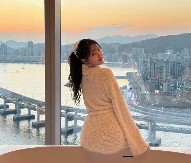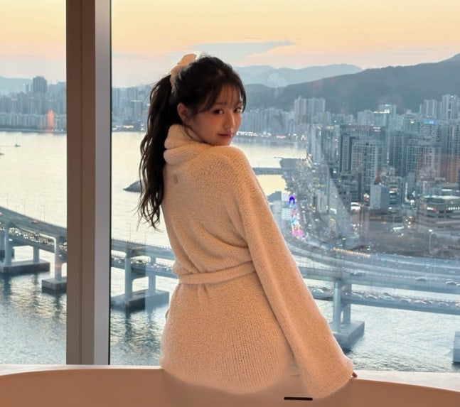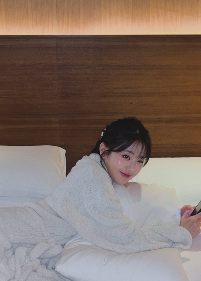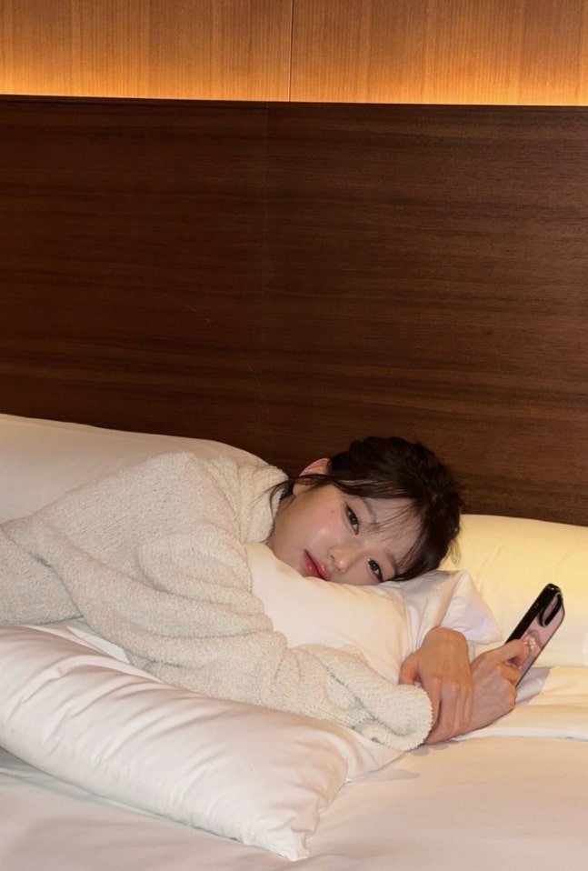 /사진=장원영 SNS오션 뷰를 배경으로도 포즈를 취한 데 이어 누군가가 찍어준 사진에선 침대 위에 누워 포즈를 취하기도 했다.