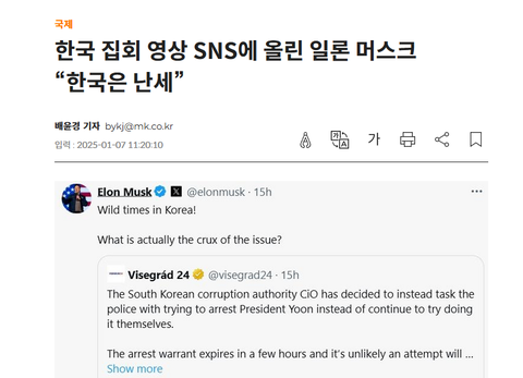 한국 집회 영상 SNS에 올린 일론 머스크 “한국은 난세” - 매일경