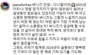 새해를 맞아 인스타에 긴 편지를 남긴 다니엘