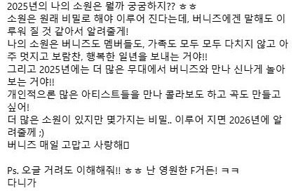 파워 F라는 다니엘이 팬들한테 보내는 편지