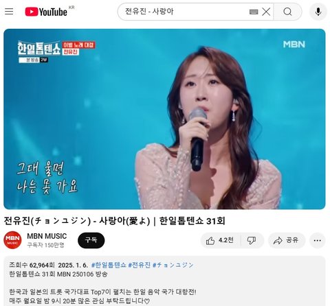 (사진3 설명) 전유진(チョンユジン) - 사랑아(愛よ)|한일톱텐쇼 31회