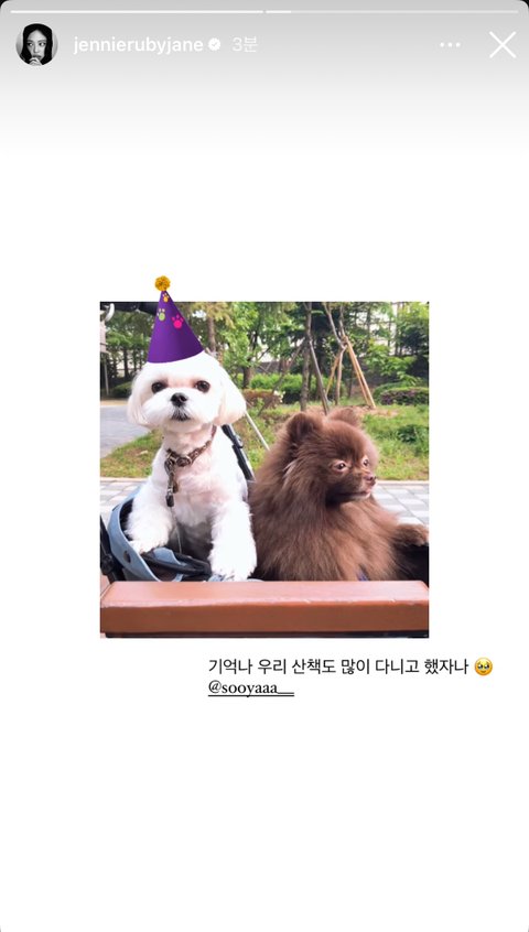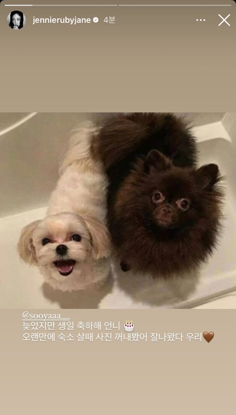 지수 생일 인스스 올렸는데 자기들 반려견 쿠마 달곰이로 모에화함 ㅋㅋㅋㅋㅋ