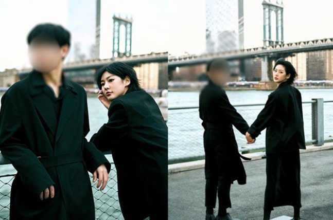 사진 속 김새론은 한 남성과 검은색 의상을 맞춰 입고 다양한 포즈를 취했다. 김새론은 이 남성을 지긋이 바라보는가 하면 뒤에서 껴안으며 환한 미소를 지었다. 손을 맞잡고 찍은 사진도 있었다.