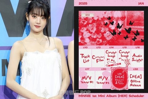 소속사 큐브엔터테인먼트는 9일 공식 SNS를 통해 민니의 첫 번째 솔로 미니 앨범 ‘HER’의 스케줄 티저를 공개했다. 이번 티저는 앞서 강렬했던 커밍순 티저 영상과 상반된 레드, 핑크 컬러의 사랑스러운 무드로 시선을 모았다.
