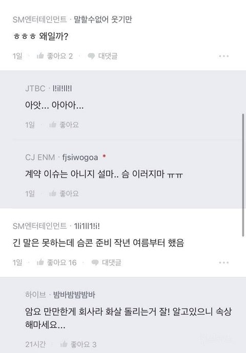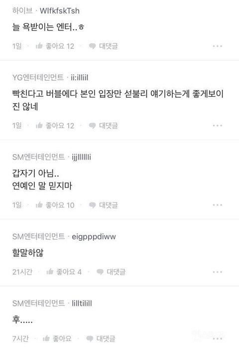 그와중에 하이브가 늘 욕받이는 엔터 이러는게 개웃기네 ㅋㅋㅋ 니네는 타돌 문건 쓴 주제