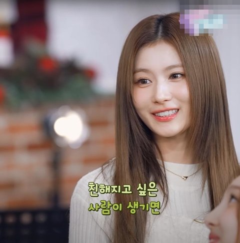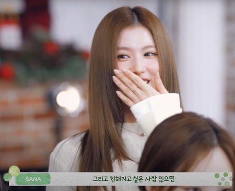 사나 마저 다시 얘기하는데 계속 눈 마주치면 얼굴 시뻘개져서 부끄러워 함 근데 눈이 너무 초롱초롱... 눈으로 ㄹㅇ 하트를 쏘고 있음