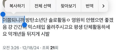 쟤네보면 정국이가 한 말들도 다 부정하면서 지들 입맛대로 해석하고 눈막귀막 하던디 덕질하는게 정국 맞나싶음ㅋㅋㅋ