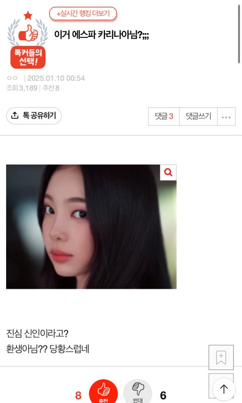 곧 신인 나온다고 저 카리나 닮았다는 짤 톡선에 계속 보냄