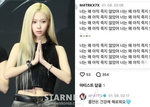 이에 윈터는 "흡연은 건강에 해로워요"라며 하트 이모티콘으로 맞받아치는 여유를 보였다.