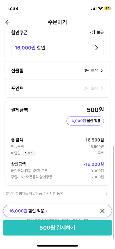 16500짜리 배떡을 500원만 내고 먹음