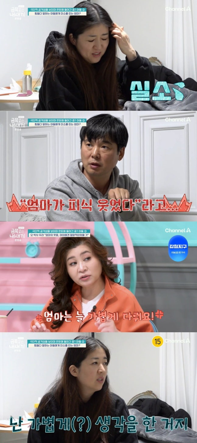 금쪽이 엄마는 "당황하는 상황에서 웃음이 난다. 우는 게 싫어서 결혼식에서도 내내 웃었다"고 털어놨다.