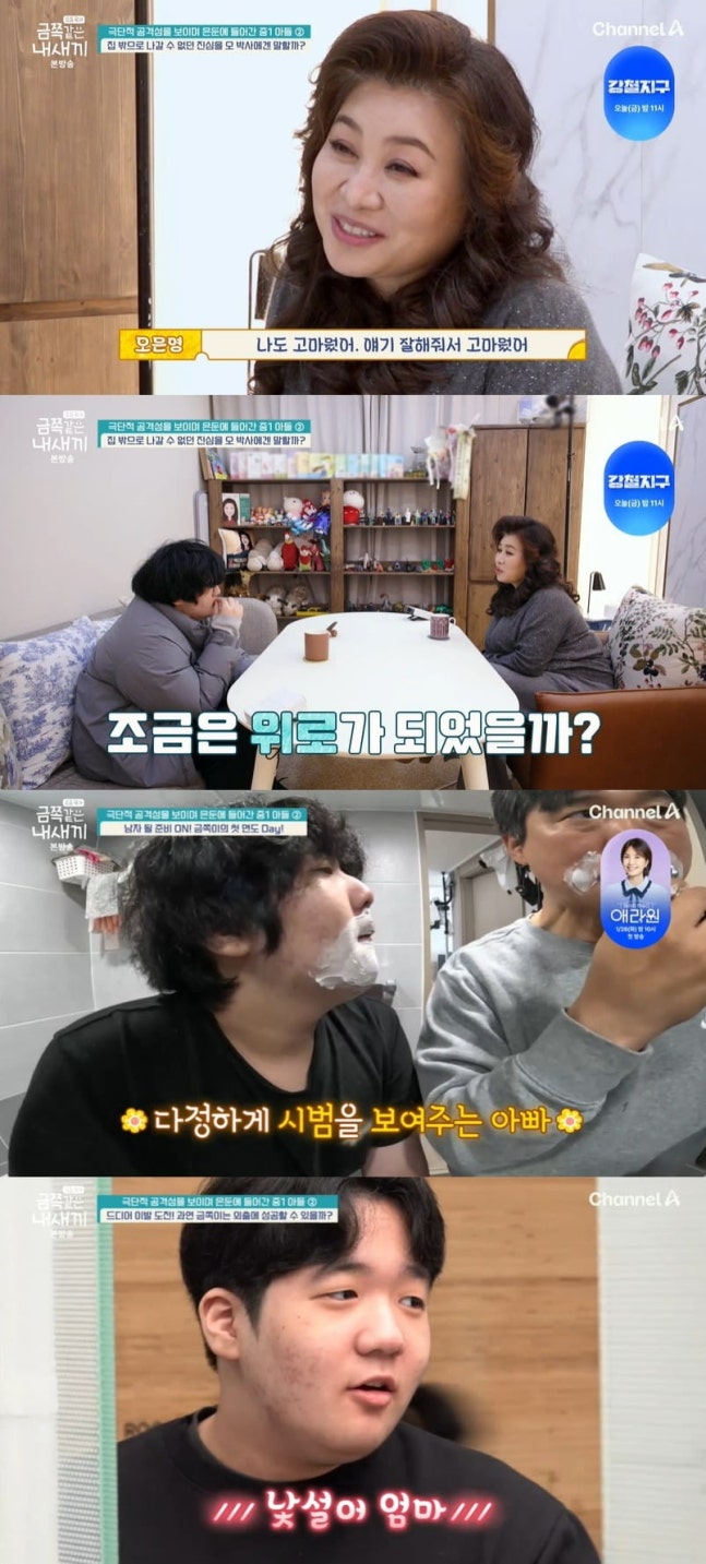 사진 = 채널A '요즘 육아 금쪽같은 내 새끼'또한 금쪽이는 아빠와 다정하게 면도도 하고, 이발도 했다. 친구와 함께 외출도 한 금쪽이는 조금씩 밝아진 모습을 보여 훈훈함을 자아냈다.