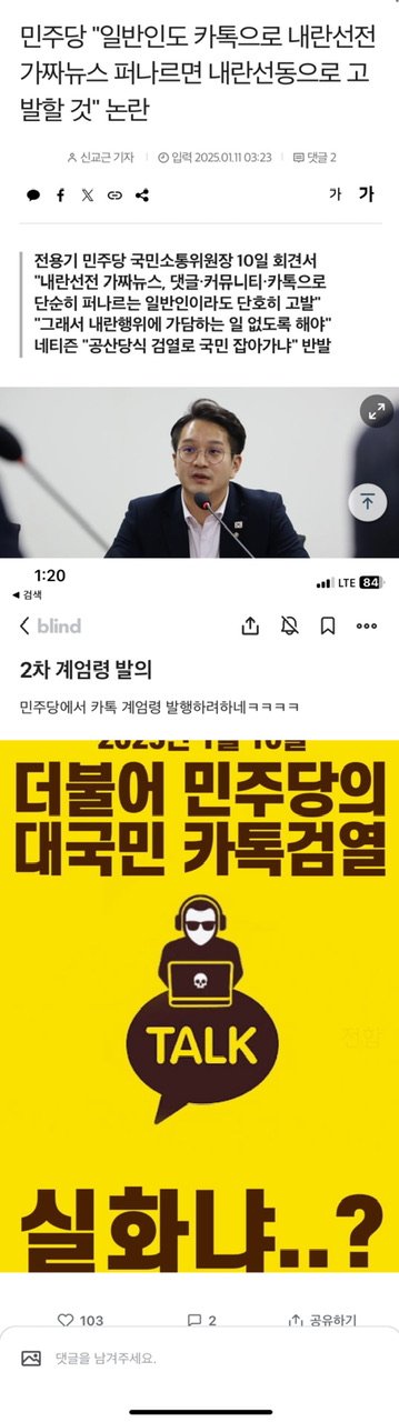내란선동죄라는 죄목마저도 내란이라고 뭐 하나 판결된 것도 없는 상태에 쓰고 자빠졌으니 짜쳐 죽겠는데 이 죄목으로 카톡으로 국민들끼리 의견 주고받는 걸 고소하겠다?