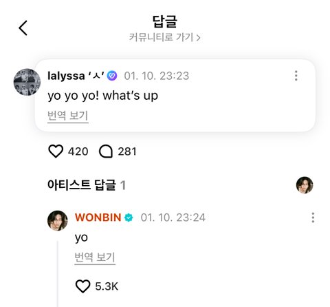 원빈 왜 자꾸 7인지지한테 답글 달아주는거임..(