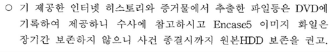 2) 이윤희 컴퓨터 하드드라이브의 분석자료가 담긴 DVD도 폐기해버렸습니다.