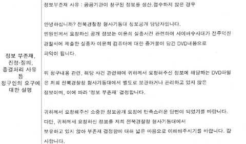 이에 대해서 가족은 2023년 12월과 2024년 1월 두차례 걸쳐 정보공개요청을 하였으나, 전북경찰청은 모두 거부합니다.