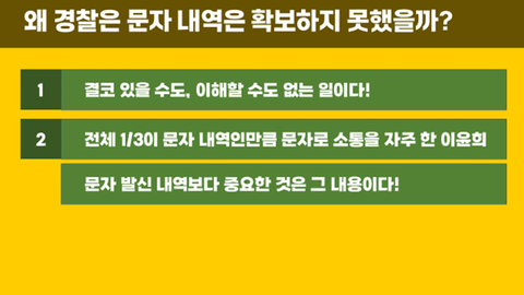 4) 그 뿐만 아니라, 이윤희 휴대폰의 문자 수발신에 대한 내역도 수사를 하지 않았습니다.
