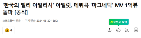 한국의 빌리 아일리시..? 왜 저게 타이틀로 붙은 거야? 진짜 궁금함 빌리 아일리시랑 아일릿이랑 무슨 연관이 있는 거지