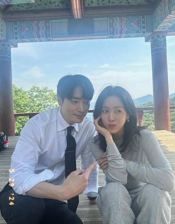 이준혁 한지민 / 한지민 소셜미디어사진 속 한지민, 이준혁은 한 정자에 걸터앉아 실제 커플 같은 케미스트리를 자아내고 있다. 해당 사진에는 2024년 5월 29일 날짜가 찍혀 있어 지난해 5월 촬영 중 찍은 사진임을 짐작케 했다.