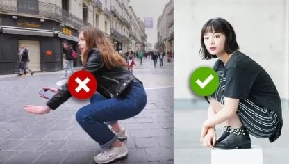 바로 발바닥을 완전히 땅에 붙히고 쪼그려 앉기(일명 아시안 스쿼드)