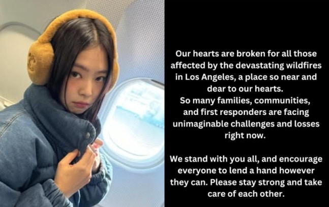 11일 제니는 자신의 계정을 통해 "LA 산불로 큰 피해를 입은 모든 분들께 안타까운 마음을 전한다"고 입을 열었다.