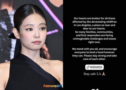이와 함께 제니는 LA 산불 피해자를 위한 구호품 및 숙박시설 등 정보가 담긴 링크를 첨부하며 관심을 당부했다.