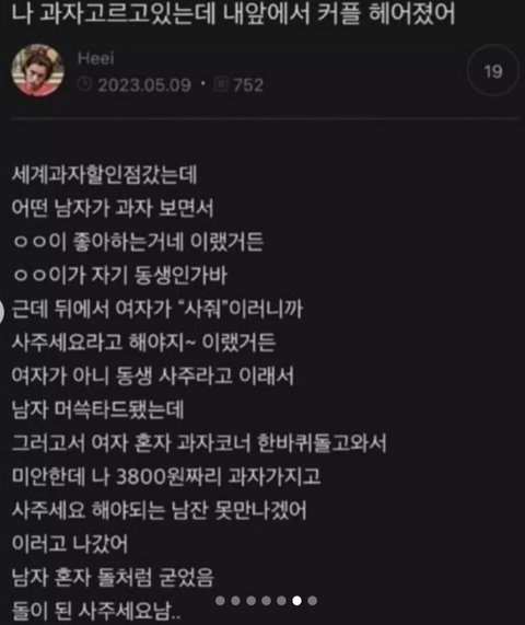 여자가 맘 식었거나 남자가 평소에 이런걸로 생색 뒤지게 내거나 둘중 하나일듯...
