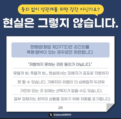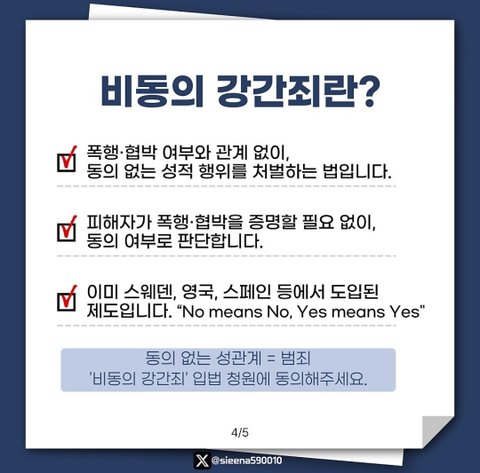 현행법에서는 "폭행 또는 협박"이 있어야만 강간죄가 성립됩니다. 피해자를 보호하고 가해자가 적법한 처벌을 받을 수 있도록 비동의강간죄 국회입법 청원 동의 부탁드립니다.