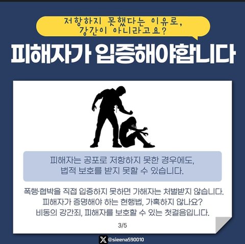 매우 불합리하고 비상식적인 일을 겪고 죽을고통의 큰 억울함과 괴로움에.. 너무나 고통스러워 저 이후로 그 누구도 이런 피해고통을 국가에 제2차, 3차 가해를 당하지 않도록 비동의강간죄를 꼭 입법 시키도록 노력하겠습니다.