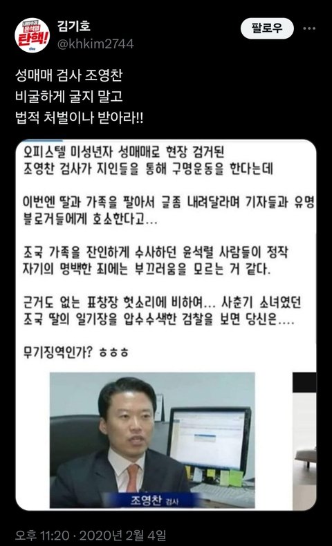 국민청원 내용을 보시면 아시겠지만 제 사건은 끝났습니다. 심지어 공판검사도 조영찬검사라고 2020년 미성년자오피스텔성매매검사였구요.(그 당시 윤석열 검찰총장 제식구감싸기 벌금 200받고 정직처분끝, 지금은 부산고등검찰 인권부장검사)