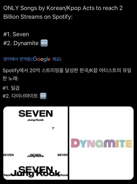 이로써 케팝 솔로 최초는 세븐 그룹 최초는 방탄 둘 다 먹음 ㅊㅋㅊㅋ