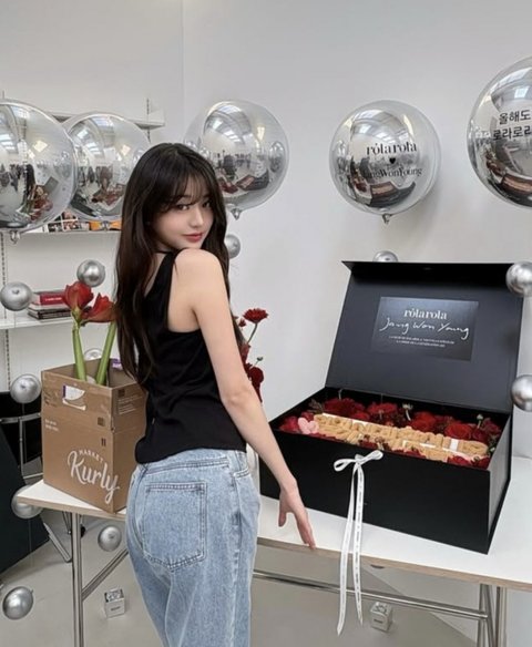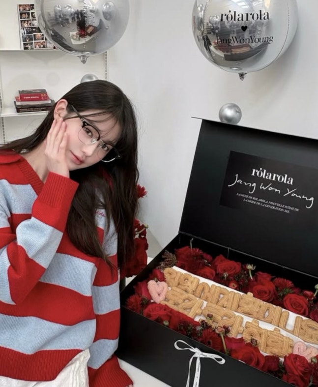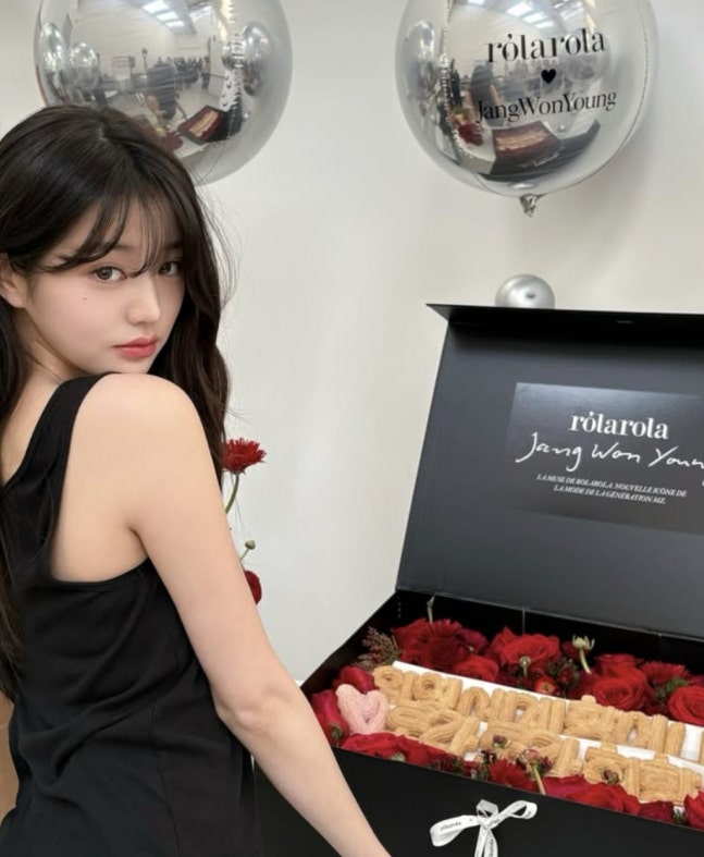 공개된 사진 속 장원영은 거대한 케이크와 꽃 그리고 풍선 앞에서 모델 같은 포즈를 취하고 있다. 그의 늘씬한 몸매와 치명적인 표정이 보는 이들의 시선을 사로잡는다.