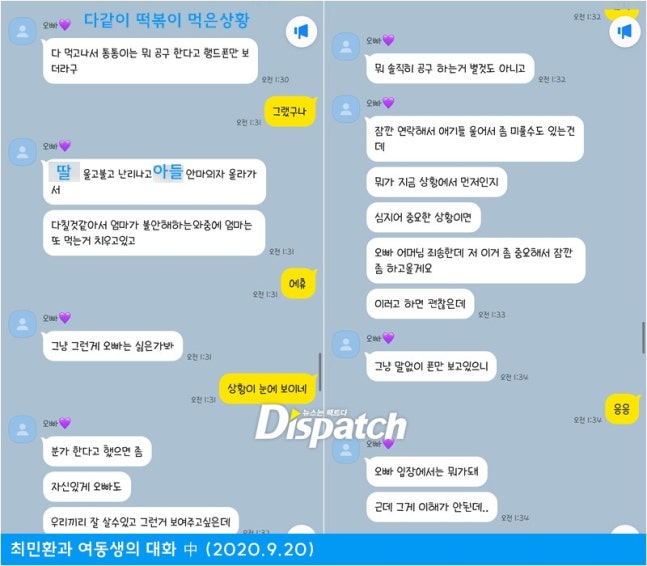 최민환은 '디스패치'에 당시 상황을 설명했다.