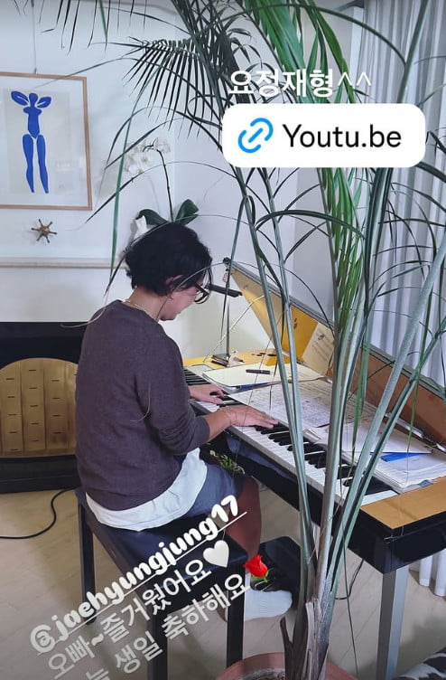 공개된 사진 속에는 정재형이 피아노를 치고 있는 모습. 특히 최근 정재형의 유튜브 채널 '요정재형'을 통해 다양한 이야기를 꺼내기도 한 송혜교는 정재형의 생일을 축하하면서 장미꽃 이모티콘을 붙여 돈독한 사이임을 드러냈다.