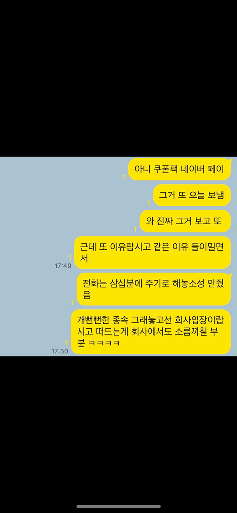 그런데 안타깝게도 핸드폰도 묶여있어 이용중인데 사은품으로 쿠폰팩이라는걸 받는게 있는데 그사건이* 발생된 11월달은 별 탈없이 매달 3일에 발송되다가 12월에 급하게 이용할일이 있어 봤더니 쿠폰팩이 오지 않아 또 ptsd몰려오는 상담사에게 전화를 걸게 되었고 딱 제가 이체되는 일자인분들한테만 늦게 발송됐다는 어이없는 답변을 듣고 더이상 대화가 통하지 않을거 같아 넘겼습니다 근데 또 지금 일월 달 받아야되는 쿠폰팩이 또 삼일인 아닌 13일에 발송되어 십일 늦춰서 보내는 그 회사에 또 맘상한 일이 발생되어 이렇게 몇자 써봤습니다