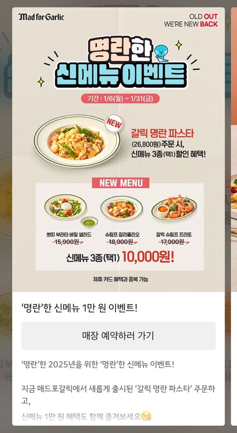 매드포갈릭 신메뉴 나와서 할인해요!!