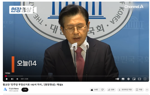 부정선거로 192석 가져 갔다고 오늘 기자회견 하고