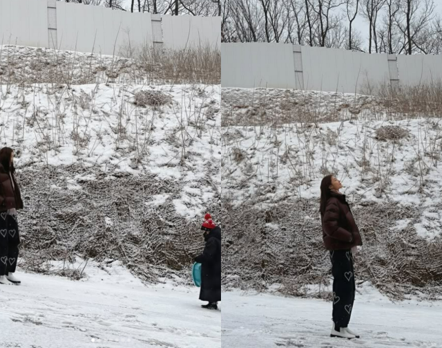 사진 속 서하얀은 아들과 함께 눈밭에서 시간을 보냈다. 이어진 사진에서는 놋그릇에 반찬을 한데 모아 식사를 했다.