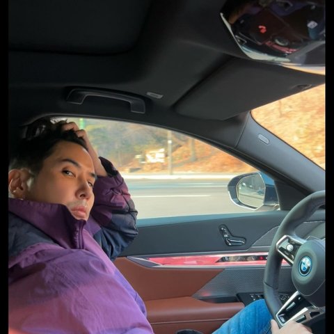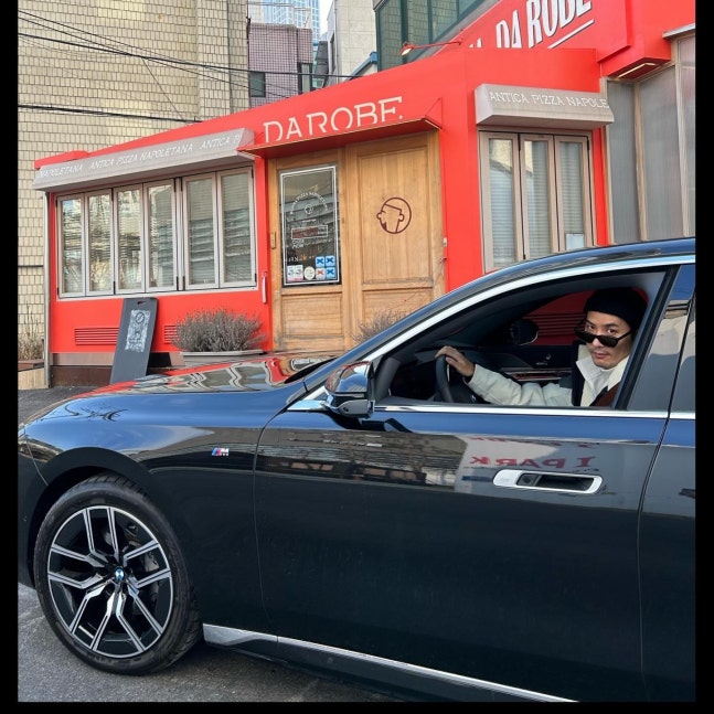 공개된 사진 속 김지석은 B사 외제차 안에서 카메라를 응시하며 포즈를 취하고 있다.