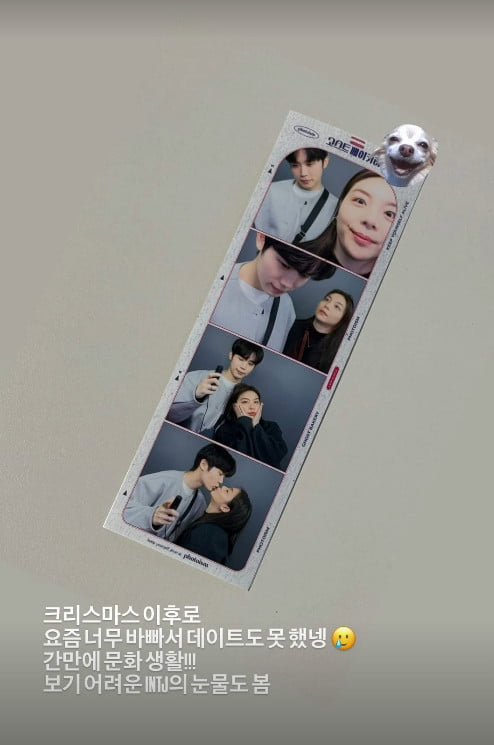 오는 4월 결혼을 앞둔 예비신랑 최시훈이 눈물을 보였다.에일리는 15일 자신의 인스타그램 스토리에 "크리스마스 이후로 요즘 너무 바빠서 데이트도 못했넹. 간만에 문화생활!!!! 보기 어려운 INTJ의 눈물도 봄"이라는 글과 함께 한 장의 사진을 게재했다.