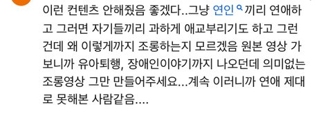 저번에 무슨 우수커플? 따라하는것도 그렇고 조롱 진짜 선 넘는듯