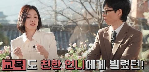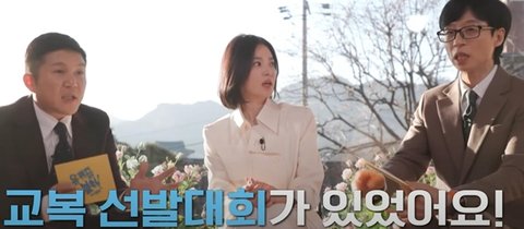 신기하게도 송혜교가 다니던 학교는 교복이 없는 학교였어서 교복도 빌려 입고 나간 교복