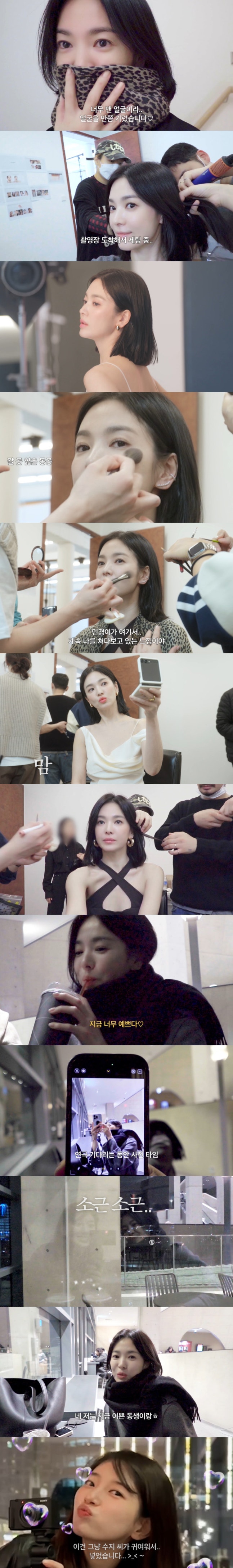 잠시 후 촬영장에 도착해 세팅을 시작한 송혜교는 "너무 어색하다"면서 카메라를 의식, "민경이가 나를 쳐다보고 있는 느낌"이라고 해 웃음을 안겼다.