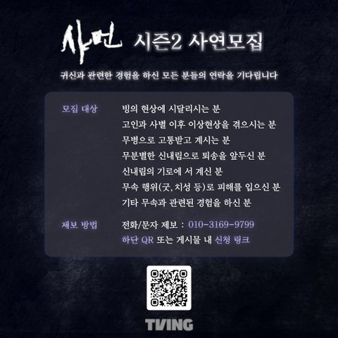 <샤먼>시즌2에서 귀신과 관련한 경험을 하신 모든 분들의 연락을 기다립니다.본인 제보, 주변인 제보 모두 가능합니다.https://www.youtube.com/watch?v=oGJKIe4tKhs
